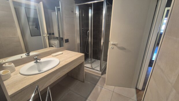 Bagno con Doccia: Il bagno, recentemente ristrutturato, è dotato di una moderna doccia finestrata. Le finiture di qualità e il design contemporaneo garantiscono un ambiente piacevole e funzionale.