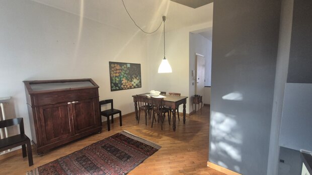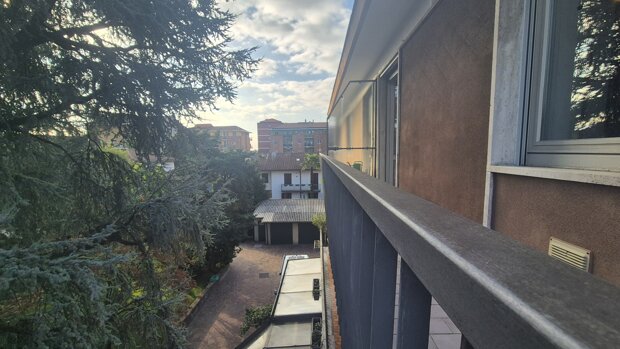 Soggiorno con Balcone: Il soggiorno è il cuore pulsante dell'appartamento. Luminoso grazie alle ampie finestre, offre accesso diretto a un balcone privato. Da qui, potrete ammirare una vista panoramica sul centro di Magenta, godendovi momenti di relax all'aria aperta.